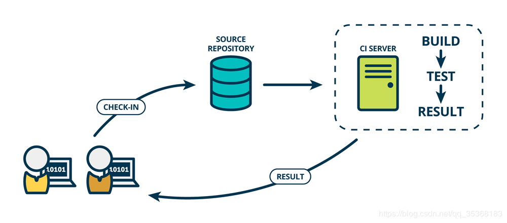 Continuous Integration:持续集成,简称CI,是软件开发周期的一种实践,把代码仓库(Gitlab或者Github)、构建工具(如Jenkins)和测试工具(SonarQube)集成在一起,频繁的将代码合并到主干然后自动进行构建和测试。简单来说持续集成就是一个监控版本控制系统中代码变化的工具,当发生变化是可以自动编译和测试以及执行后续自定义动作。